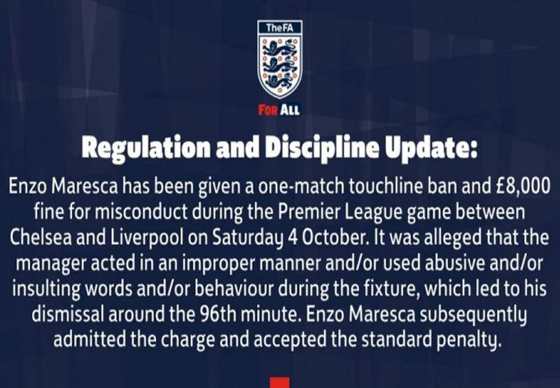 事出必有因,切尔西近日受到重创,英足总正式宣布,马雷斯卡将面临禁赛处罚并被罚款。近几场比赛中,切尔西频频受到红牌困扰,球队纪律问题成为头号烦恼。